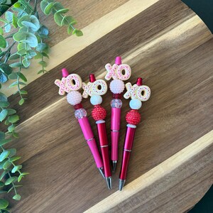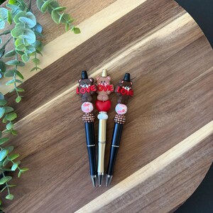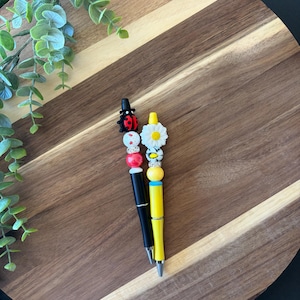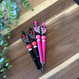 Silicone beaded pen made with BPA free and food grade silicone beads. Some products may contain materials such as beech wood, acrylic beads, and rhinestones. Ink is black.